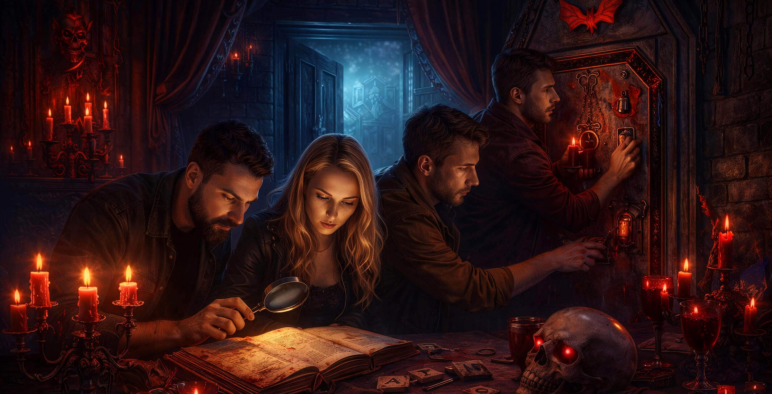 An escape room is a live, interactive adventure game where you and your team are placed in a themed room and must solve puzzles, uncover clues, and complete challenges to achieve a goal—usually within 60 minutes.